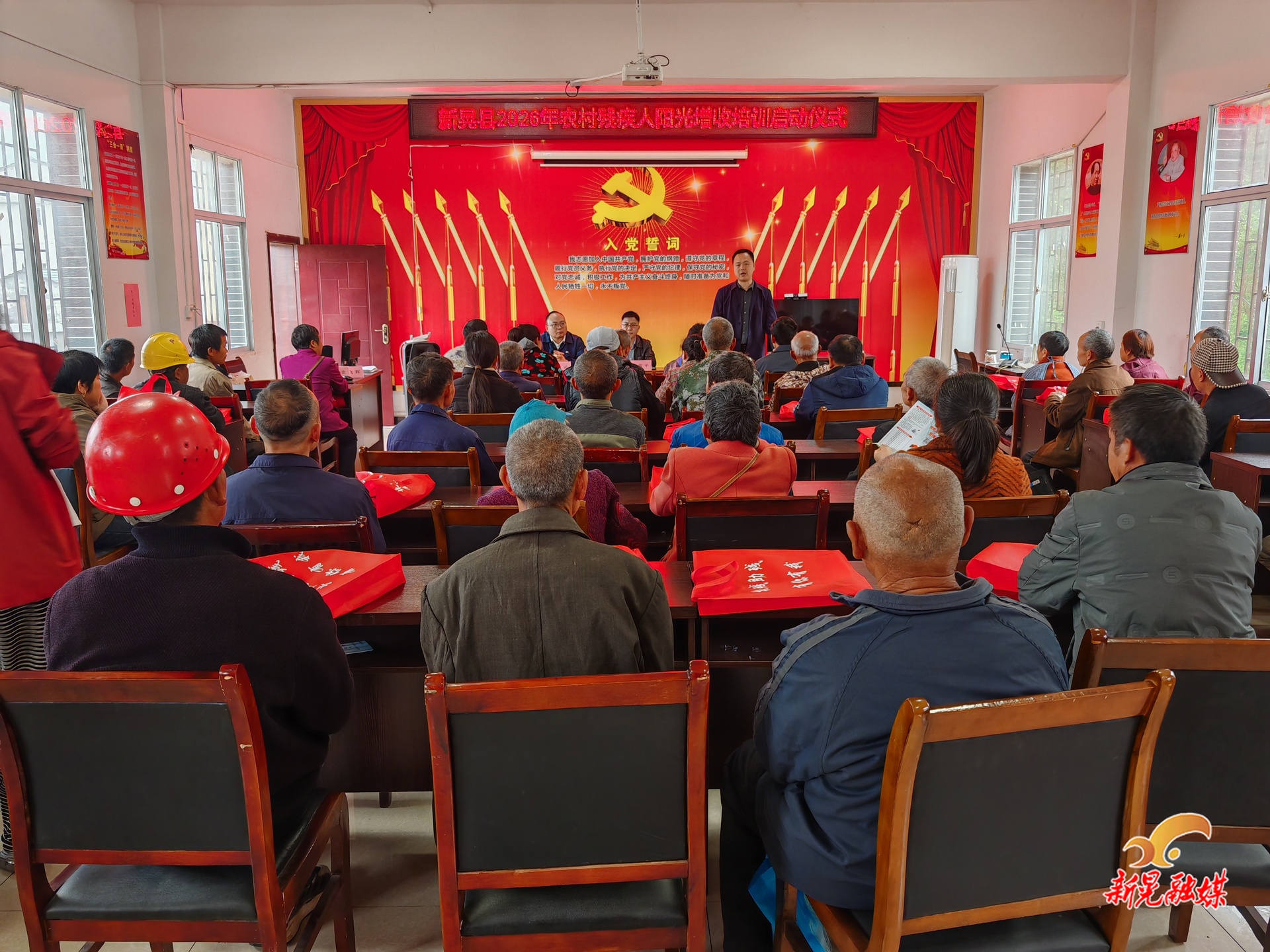 新晃融媒4月9日讯(记者:舒昊)4月8日,县残联到鱼市镇开展2026年“农村残疾人阳光增收计划”,为100户困难残疾人家庭免费发放猪仔、羊仔、饲料、肥料等价值25万元的生产物资。