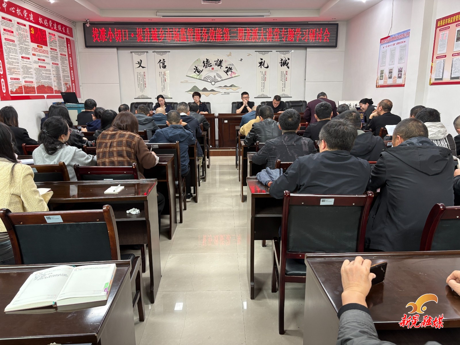 新晃融媒4月15日讯(通讯员:李斯琦)4月13日,新晃市场监督管理局召开2026年第3期“龙溪大讲堂”专题学习研讨会,以“找准小切口 提升城乡市场监管服务效能”为主题,进一步统一思想、压实责任、狠抓落实,切实把监管工作做细做实,更好服务全县发展大局、守护群众切身利益。