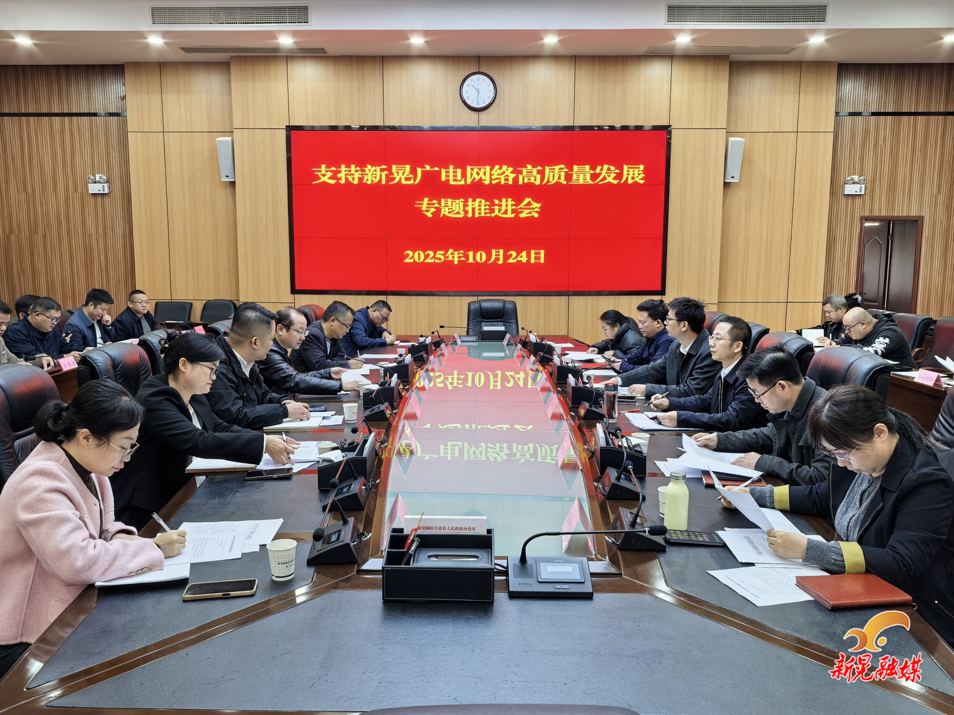 新晃融媒10月24日讯(记者:向勇嘉)10月24日,我县支持广电网络高质量发展专题推进会召开,县领导金国华、夏崇源参加。