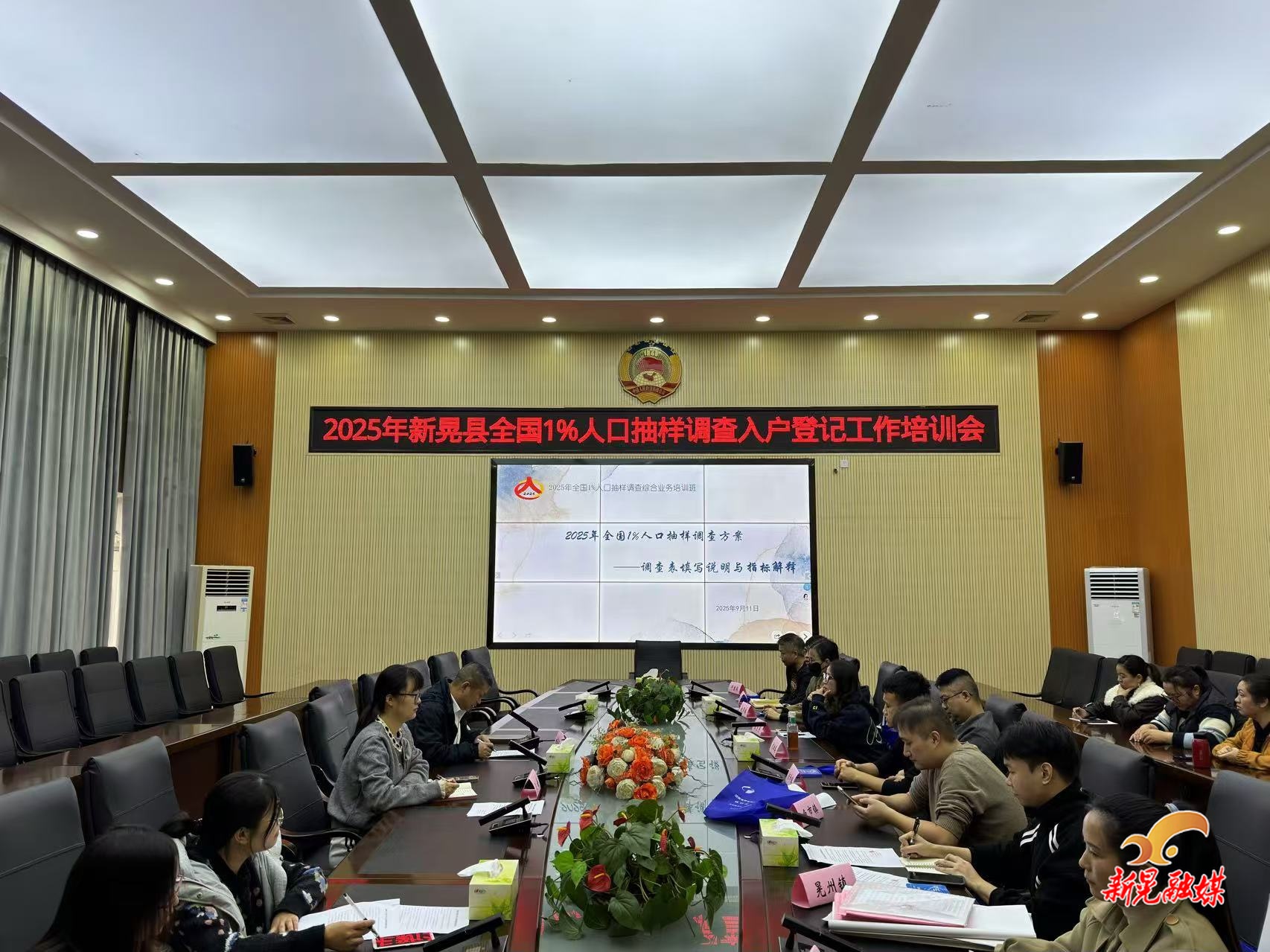 新晃融媒11月4日讯(通讯员:杨凯声)为高标准、高质量推进2025年全国1%人口抽样调查工作,11月3日,新晃统计局组织开展全国1%人口抽样调查入户登记工作培训会,全县各乡镇调查指导员、村居普查员及统计局业务骨干,共计50余人参加培训。