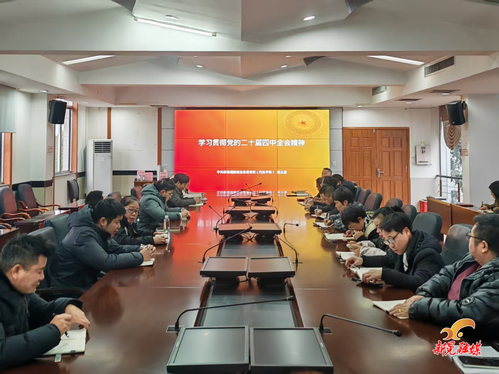 新晃融媒2月4日讯(记者:杨长钊)2月3日,县“龙溪讲坛”宣讲团成员、县委党校副校长吴从星为县水利局、县气象局干部职工宣讲党的二十届四中全会精神。