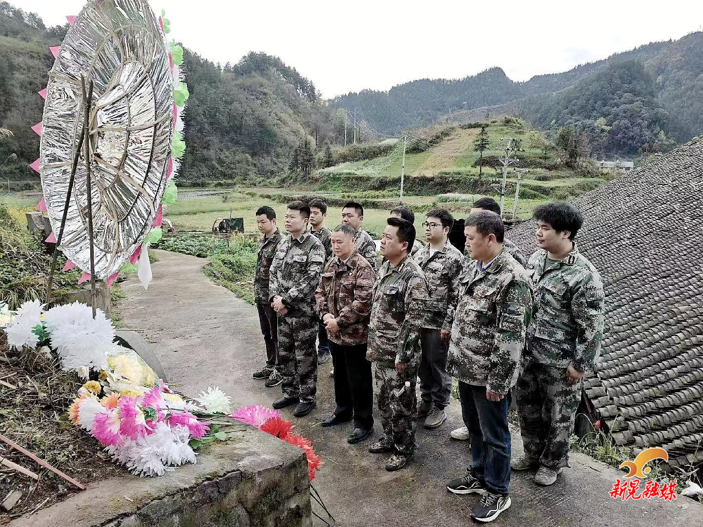 凉伞镇组织党员、新时代文明实践所志愿者在子成村鲍子成烈士墓开展祭扫活动,用鲜花祭祀的方式表达对英雄先辈的无限哀思。