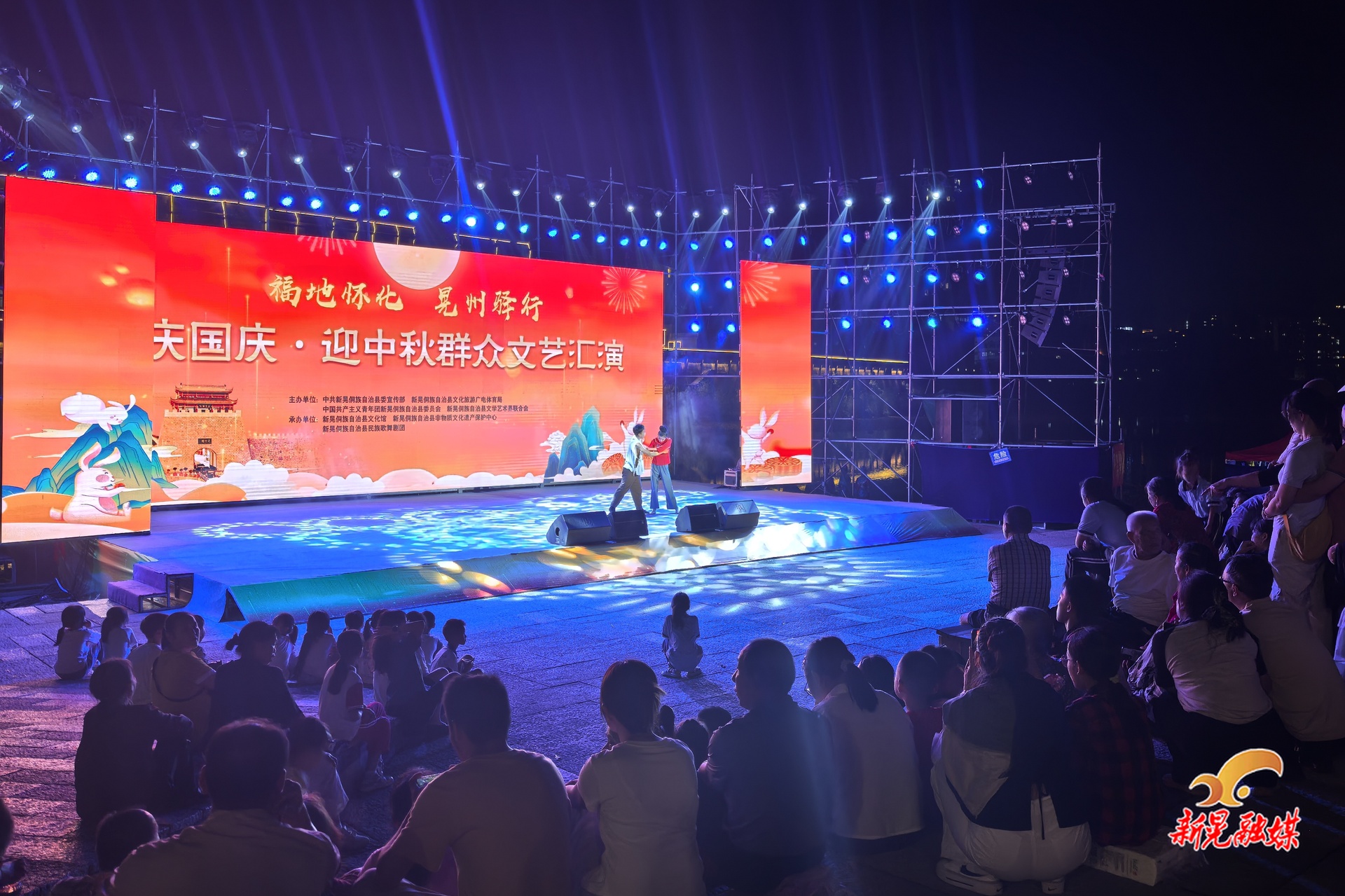 新晃融媒9月30日讯(记者:杨丽)9月30日晚,我县龙溪古镇龙溪口码头华灯璀璨、热闹非凡,一场以“庆国庆·迎中秋”为主题的群众文艺汇演在此激情上演,为我县群众呈上了一场精彩绝伦的文化盛宴。