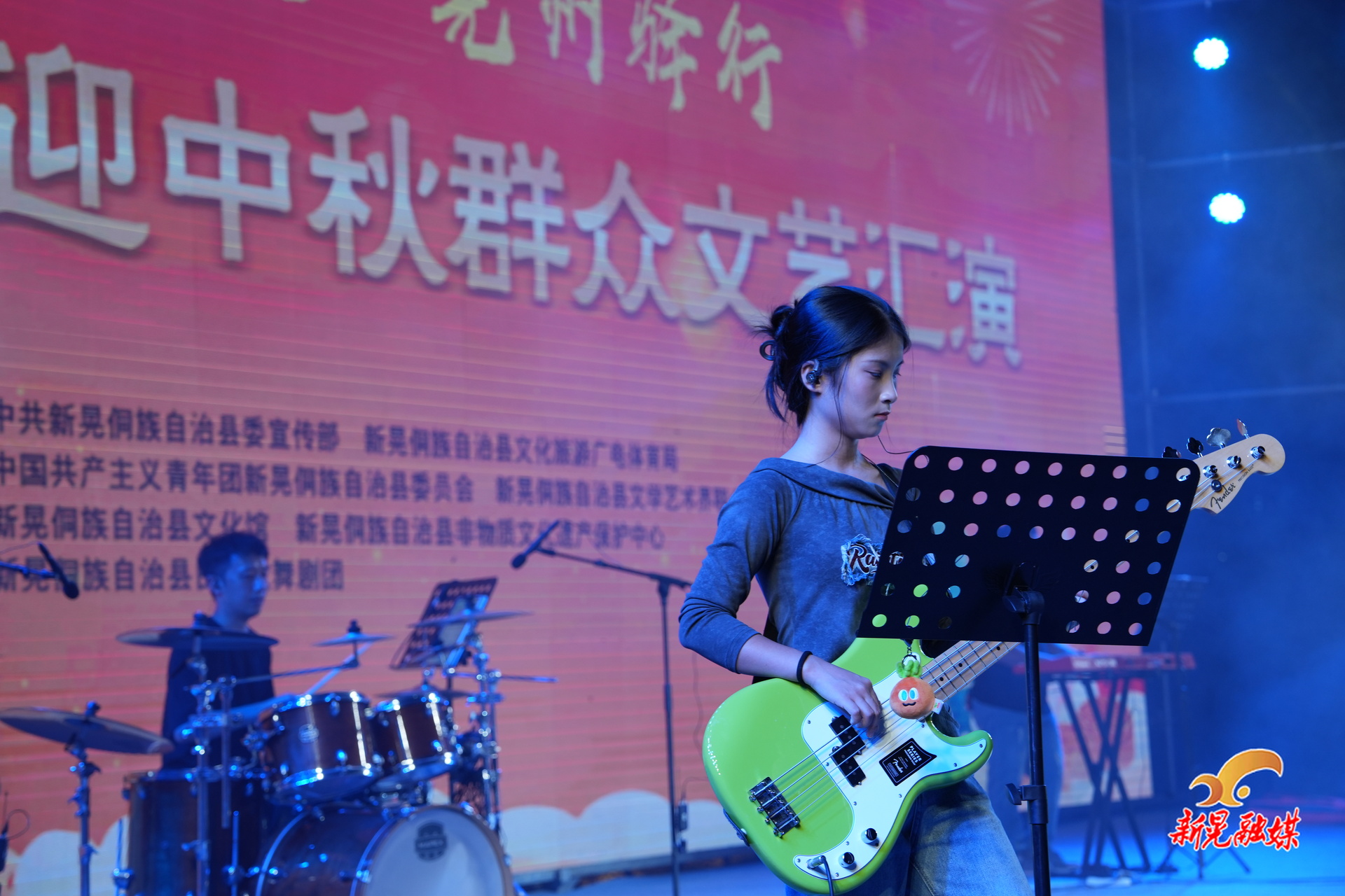 新晃融媒10月5日讯(记者:熊玉萍)10月4日,龙溪古镇龙溪口码头热闹非凡,一场以“古镇‘邂逅’电音”为主题的演出在此精彩上演。本土夜郎乐队携多首经典曲目嗨翻现场,用动感旋律与古镇风情碰撞出独特火花,为市民与游客的国庆假期增添了别样活力。