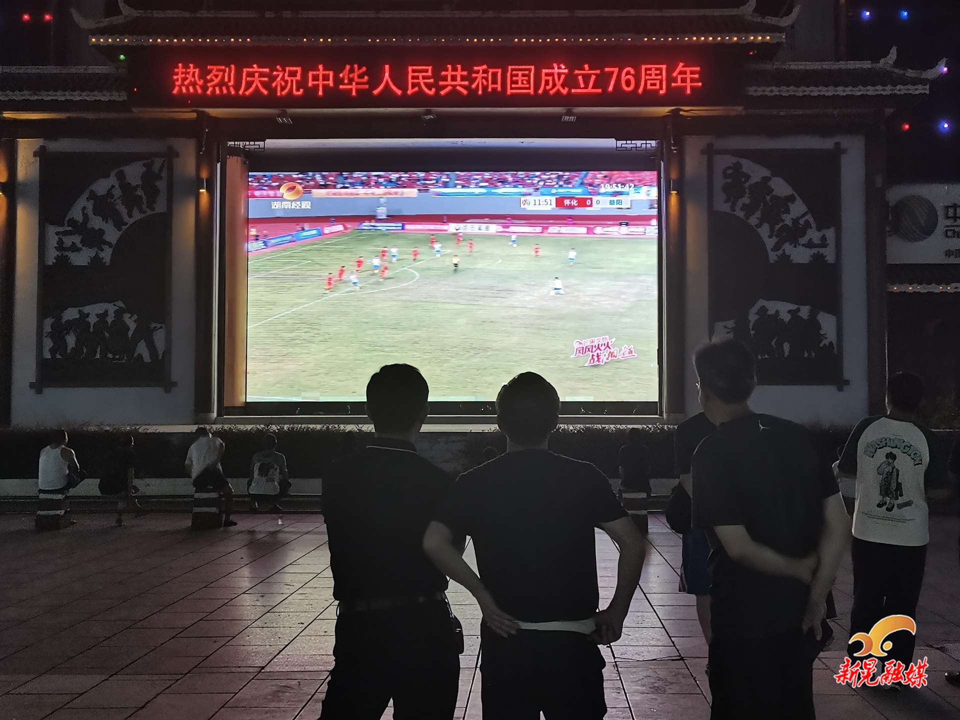新晃融媒10月5日讯(记者:熊玉萍)10月4日,怀化队本赛季首场湘超主场赛事正式打响,对阵实力不俗的益阳队。我县在夜郎广场同步转播本场赛事,吸引不少市民驻足观赛,共同见证怀化足球湘超主场高光时刻。